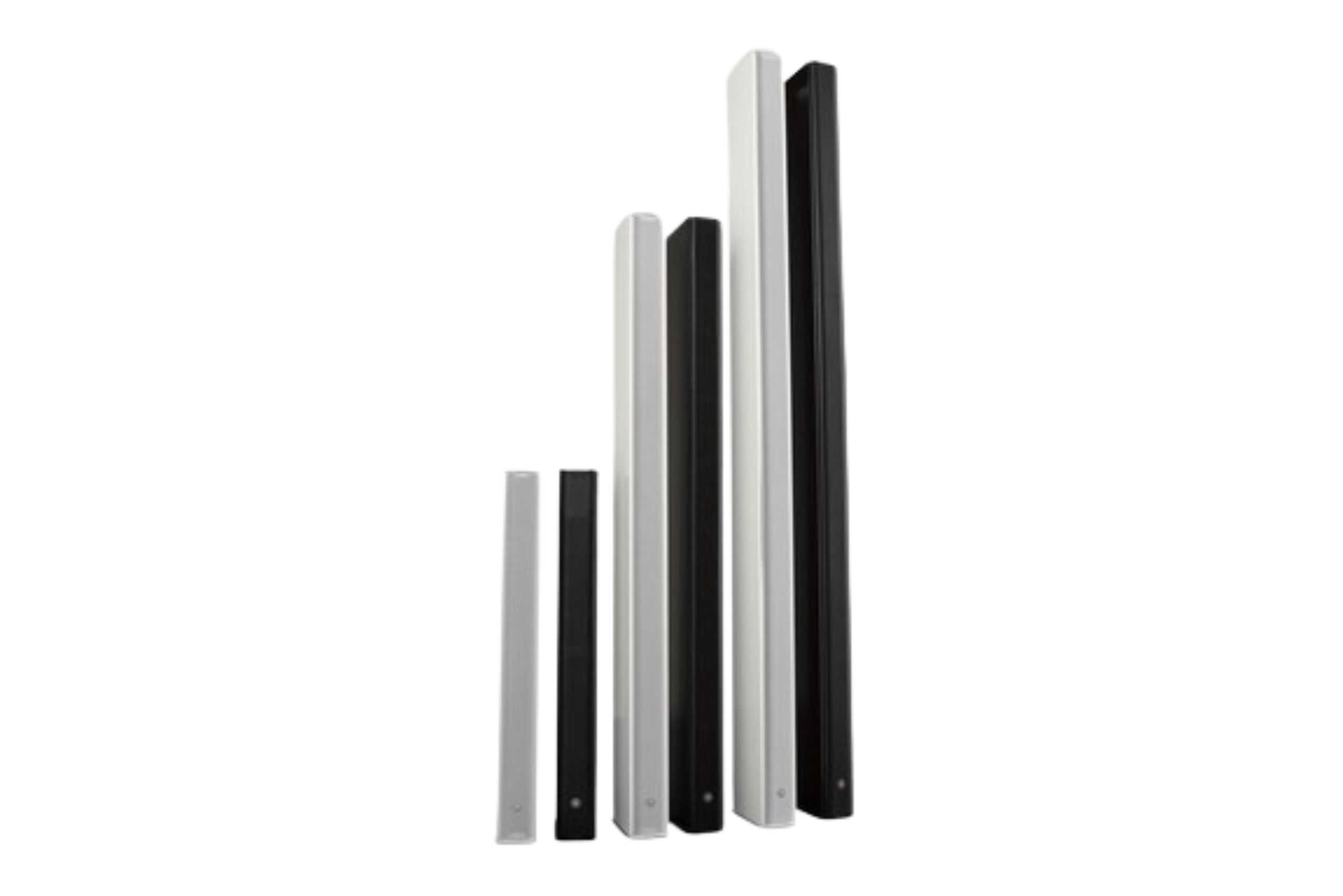 Slim column speakers offering clear sound dispersion in challenging acoustics.